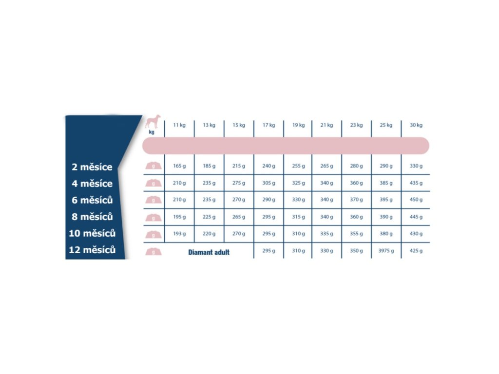 Krmný návod: lze podávat suché, nebo navlhčené vodou nebo vývarem. Doporučuje se při přechodu z jiného krmiva dávky přidávat postupně. Pes musí mít vždy k dispozici misku s čerstvou vodou.
