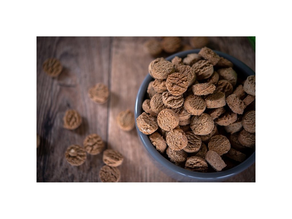 Denní dávku stanovujeme dle velikosti psa, jeho kondice a výkonu. Jsou vítanou svačinou v každou denní dobu.Složení : pšeničná mouka, škvarky, vaječná melanž, minerální látkyAnalytické znaky : hrubý protein 18%, hrubé oleje a tuky 8,5%, hrubá vláknina 4,0%, hrubý popel 7,0%