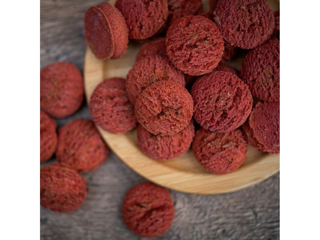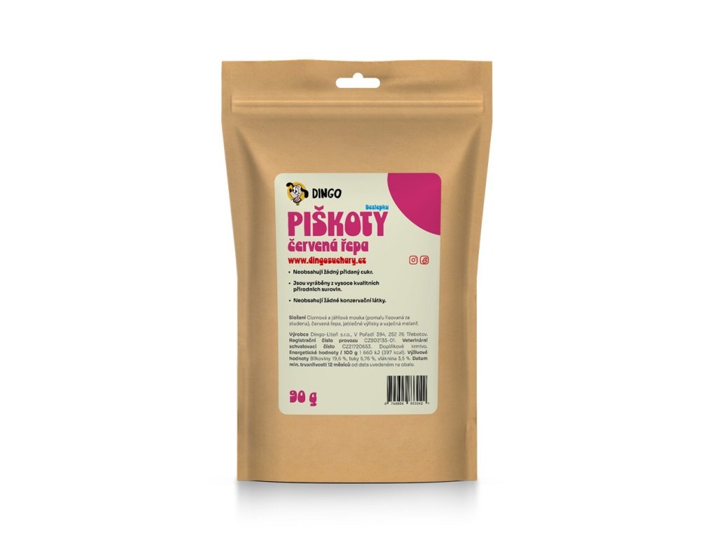 Neobsahuje žádná syntetická aditiva.Složení: cizrnová a jáhlová mouka (pomalu lisovaná za studena), červená řepa, jablečné výlisky a vaječná melanžAnalytické znaky : hrubý protein 19,5%, hrubý popel 2,72%, vlhkost 6,81%, hrubé oleje a tuky 6,18%, hrubá vláknina 4,7%