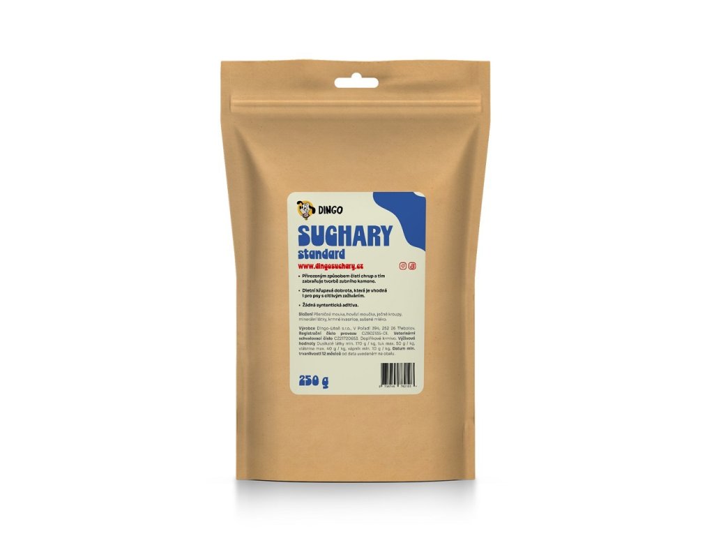 Pomalu pečené DINGO suchary jsou vyrobeny z kvalitních lokálních surovin. Přirozenou cestou čistí zuby vašeho mazlíčka a tím se zabraňuje tvorbě zubního kamene, jsou lehce stravitelné bez přidaných konzervantů a aditiv.