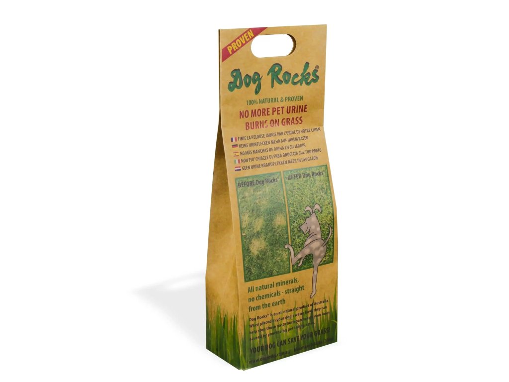 Jedinečný a ověřený produkt na eliminaci vypálených skvrn na trávníku poté, co jej Váš mazlíček použije na malou toaletu. Stačí vložit obsah balení Dog Rocks® do misky Vašeho domácího mazlíčka a naplnit misku vodou. Dog Rocks® odfiltruje z vody například některé dusičnany, čpavek a škodlivé stopové prvky, které jsou obvykle vylučovány močí a jejich vlivem dochází ke žloutnutí a následnému spálení trávníku. Kameny Dog Rocks® dodávají Vašemu čtyřnohému kamarádovi čistší zdroj vody a podporují aktivní, ekologicky uvědomělý životní styl. Užijte si více času hraním s Vaším čtyřnohým parťákem a společnou relaxaci na zahradě s vědomím, že Vaše tráva zůstává zelená a rutina Vašeho mazlíčka zůstává nezměněna. Dog Rocks® představují skutečnou pomoc pro Váš trávník!