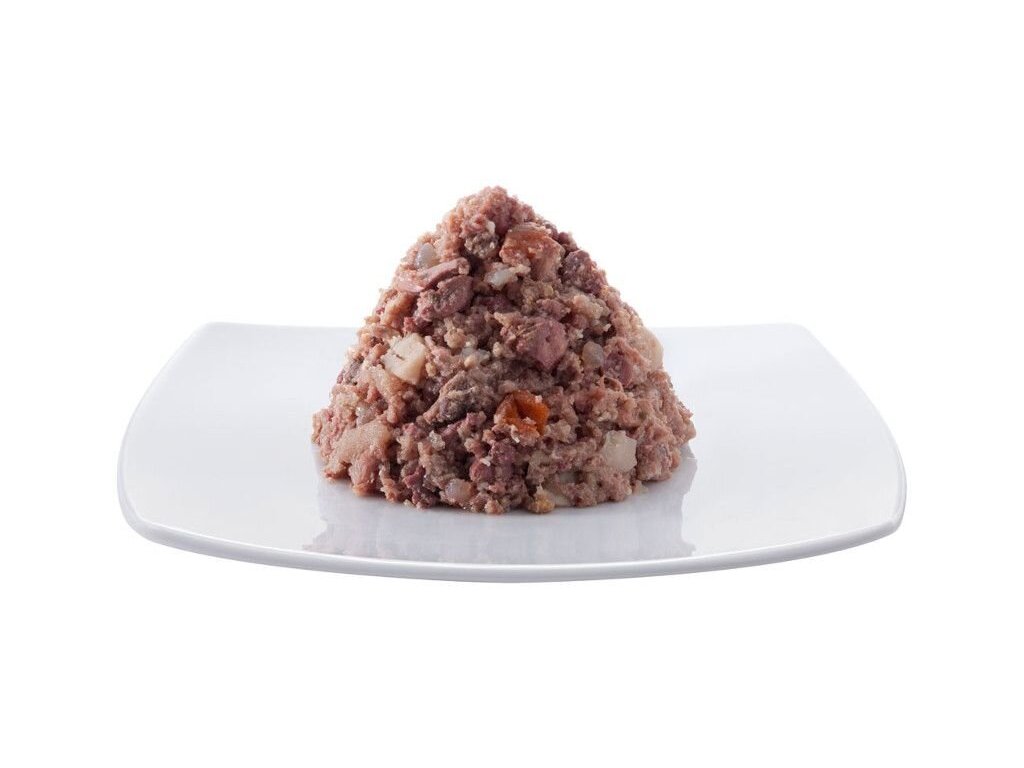 Lahodné krmivo pro psy, které obsahuje vysoký podíl chutného hovězího masa, zdraví prospěšnou mrkev, brambory, jablka a smetánku lékařskou. Dogz finefood obsahuje pouze suroviny vysoké potravinářské kvality a svým složením odpovídá přirozené psí stravě. Krmivo je bez konzervantů, umělých barviv a dochucovadel. Krmivo neobsahuje geneticky upravené suroviny. Jedná se o kompletní krmivo.Složení: hovězí maso 65% (libové maso, srdce, játra, plíce a dršťky), pitná voda 25,7%, brambory 3%, mrkev 3%, jablka 2%, minerály 1%, pupalkový olej 0,2% a smetánka lékařská 0,1%.Analýza: hrubý protein 10,4%, hrubý tuk 6,6%, hrubý popel 2,2%, hrubá vláknina 0,4%, vlhkost 76%Nutriční doplňkové látky: vitamín D 200 IE, zinek 25 mg, mangan 1,4 mg, jód 0,75 mg