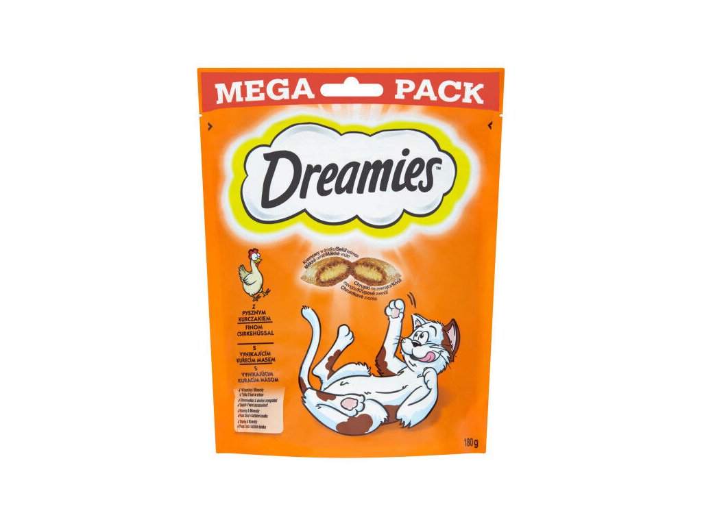 Dreamies křupavé polštářky plněné jemným krémem s příchutí kuřete. Lahodná, pro kočky lákavá pochoutka Dreamies, které žádná kočka neodolá, přímo vybízí k rozmazlování Vašeho mazlíčka. Pamlsek Dreamies zpestří krmivo a kočka se něj bude těšit stejně jako na Váš příchod domů.