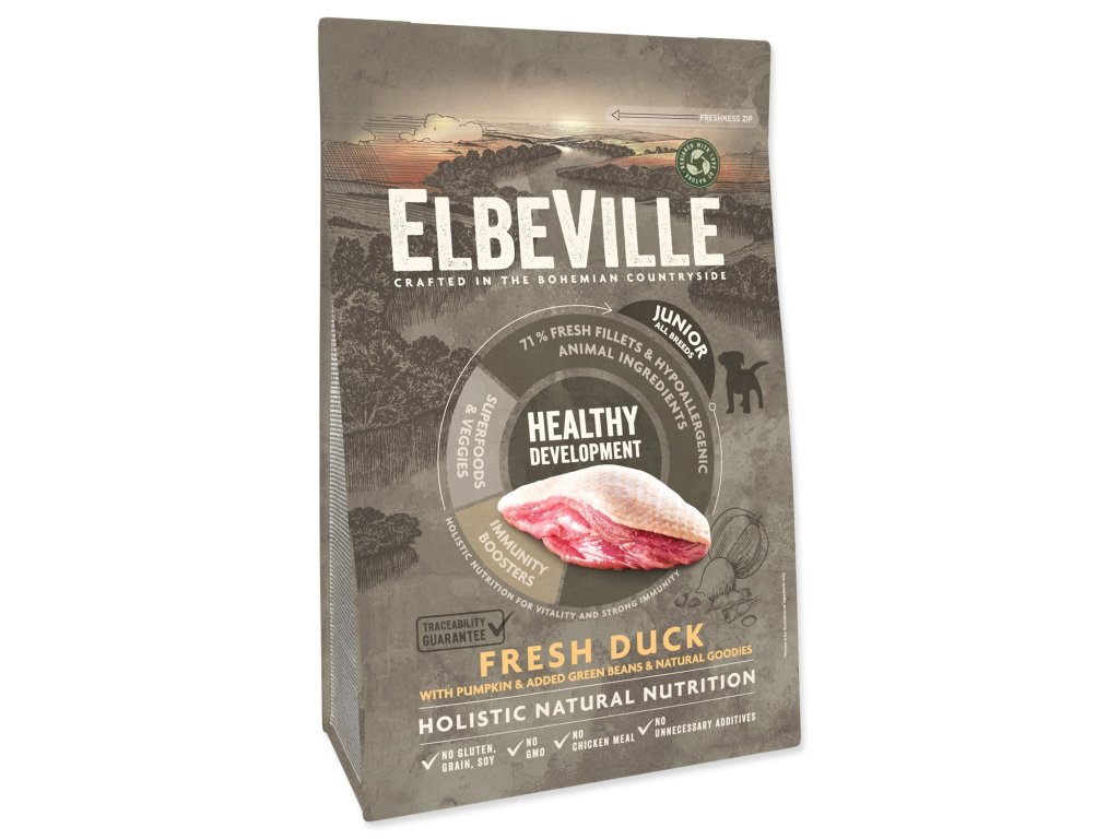 Krmivo bylo vyvinuto v souladu s holistickým, 360° pohledem na každodenní potřeby psa tak, aby zajistilo jeho vitalitu, imunitu a zdravé prospívání. Dbáme i na zdraví naší planety. Krmivo ELBEVILLE je vyráběno v České republice z lokálních surovin. Obaly krmiv ELBEVILLE jsou plně recyklovatelné.