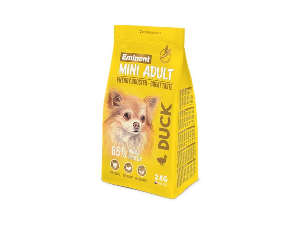 Kompletní krmivo Eminent Mini Duck je skvělou volbou pro dospělé psy malých a mini plemen, kteří žijí aktivním způsobem života, milují sport, pohyb a mají vyšší nároky na energii. Kachní maso v kombinaci s hydrolyzovanými kachními játry je ideální pro psí gurmány, kteří trvají jen na tom nejchutnějším krmivu. Batáty a kořenová zelenina jsou zdrojem vitamínů a minerálů a prospívají zdraví trávicího traktu.