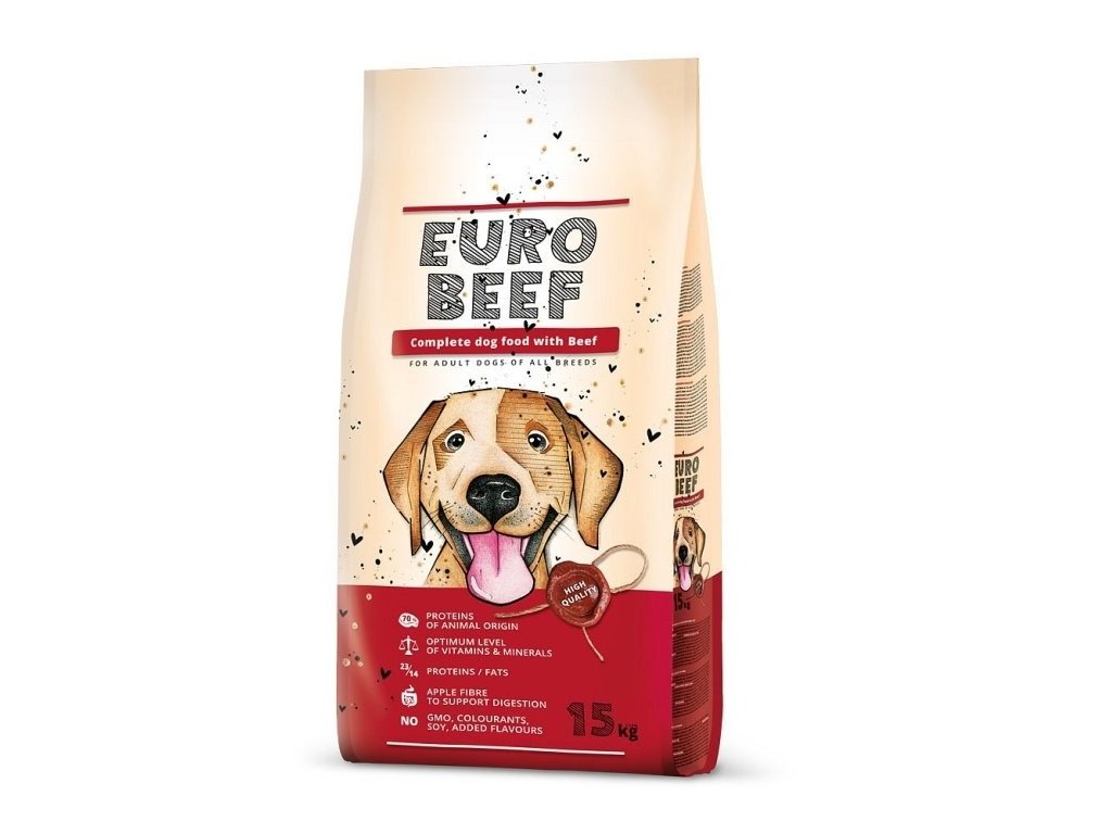 Kompletní krmivo EUROBEEF s hovězím masem pro dospělé psy všech plemen.