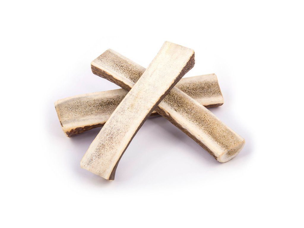 Humánní a udržitelné! Zvířatům se pro jejich parohy neubližuje. Každou sezónu se přirozeně shodí, posbírají, očistí, nařežou a připraví ke žvýkání.