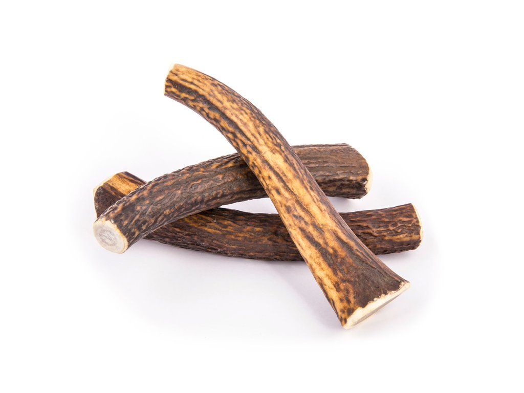 Humánní a udržitelné! Zvířatům se pro jejich parohy neubližuje. Každou sezónu se přirozeně shodí, posbírají, očistí, nařežou a připraví ke žvýkání.