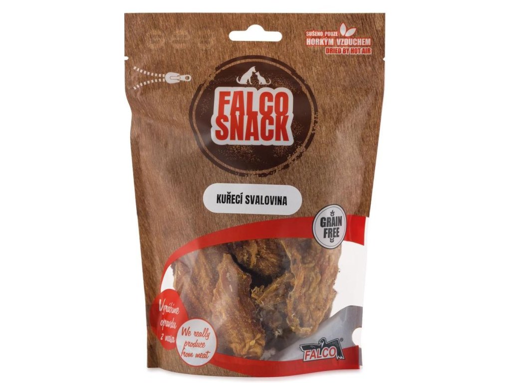 100% přírodní pamlsky pro psy Falco extra libová svalovina. Pamlsky jsou sušené pouze horkým vzduchem a neobsahují žádné další přidané látky.