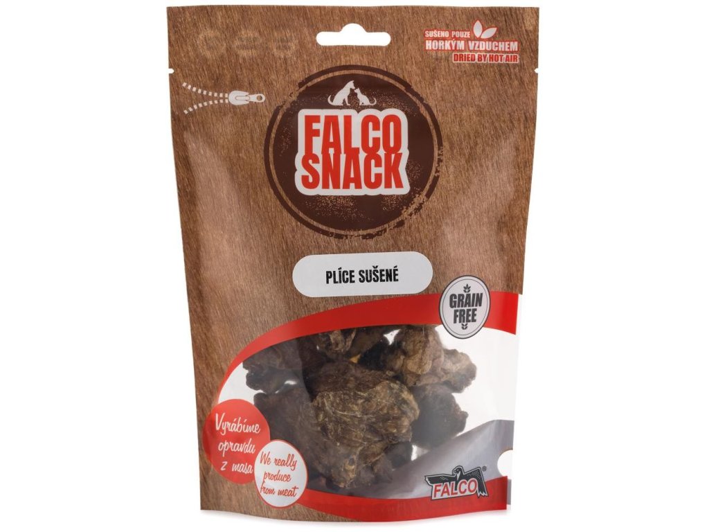 Pamlsky sušené horkým vzduchem Falco. Přírodní pamlsky pro psy, která posiluje žvýkací svalstvo a má blahodárné účinky na organismus. Zabaleno v uzavíratelných sáčcích pro zachování čerstvosti plic.