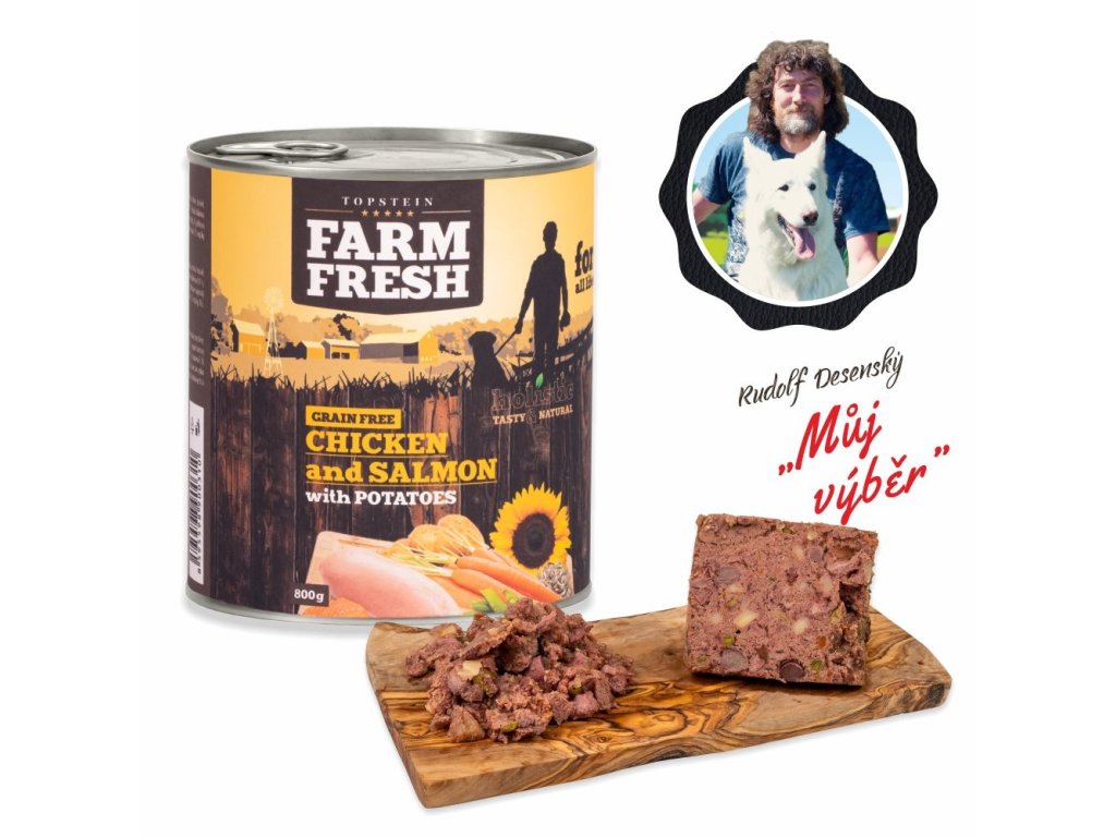 Složení: kuře, losos a vedlejší prod. z kuřete a lososa, brambory, mrkev, hrášek, minerální látky, slunečnicový olej