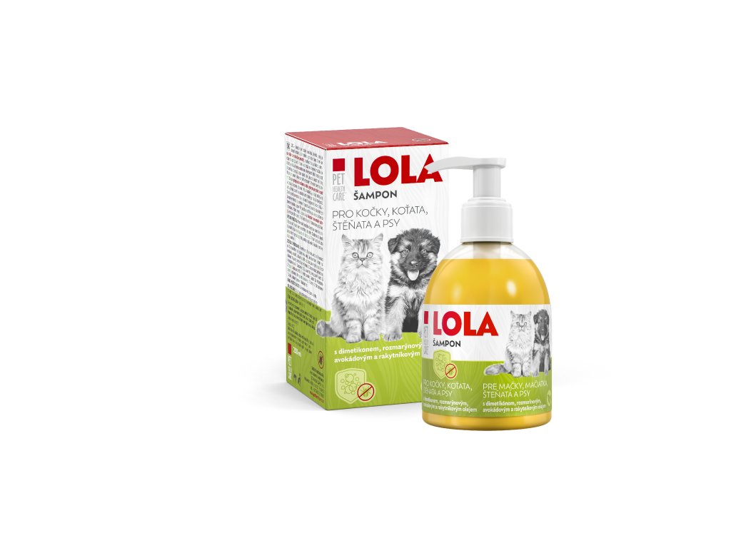 LOLA – šampon pro kočky, koťata, štěňata a psy, je šampon obsahující dimetikon a přírodní oleje. Dimetikon se váže na vnější parazity, například blechy a klíšťata, omezuje jejich pohyblivost. K tomu dochází při mytí mazlíčka, což usnadňuje jejich uvolnění a odstranění. Navíc dimetikon může zůstat na srsti i po umytí, pak působí jako „lepící past“ na blechy. Lze je pak lehce odstranit vyčesáním či vykartáčováním. Rozmarýnový olej