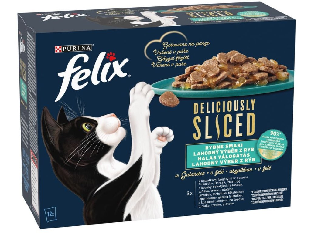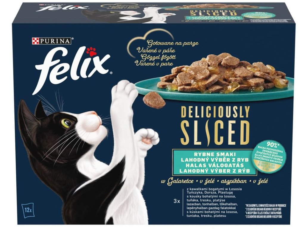 Felix Deliciously Sliced losos, tuňák, treska, platýs v želé 12 x 80g