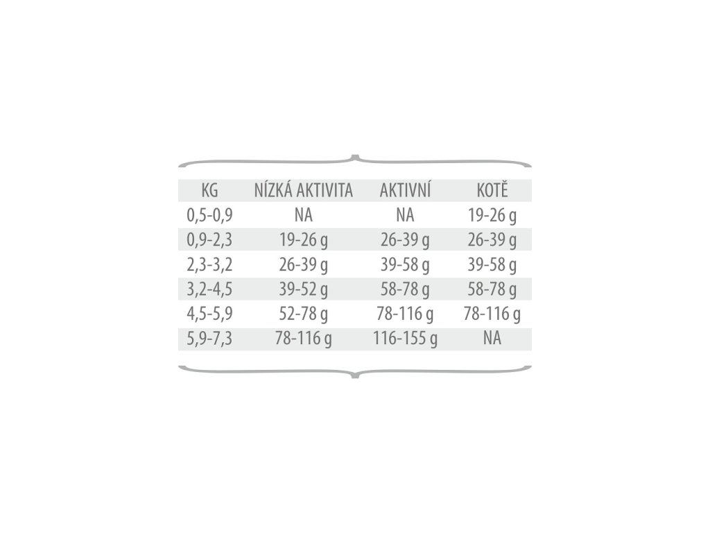 Jeden zdroj živočišné bílkoviny - Díky použití jednoho zdroje živočišné bílkoviny je složení krmiva jednodušší a přehlednější. To usnadní trávicí proces a minimalizovat střevní potíže.