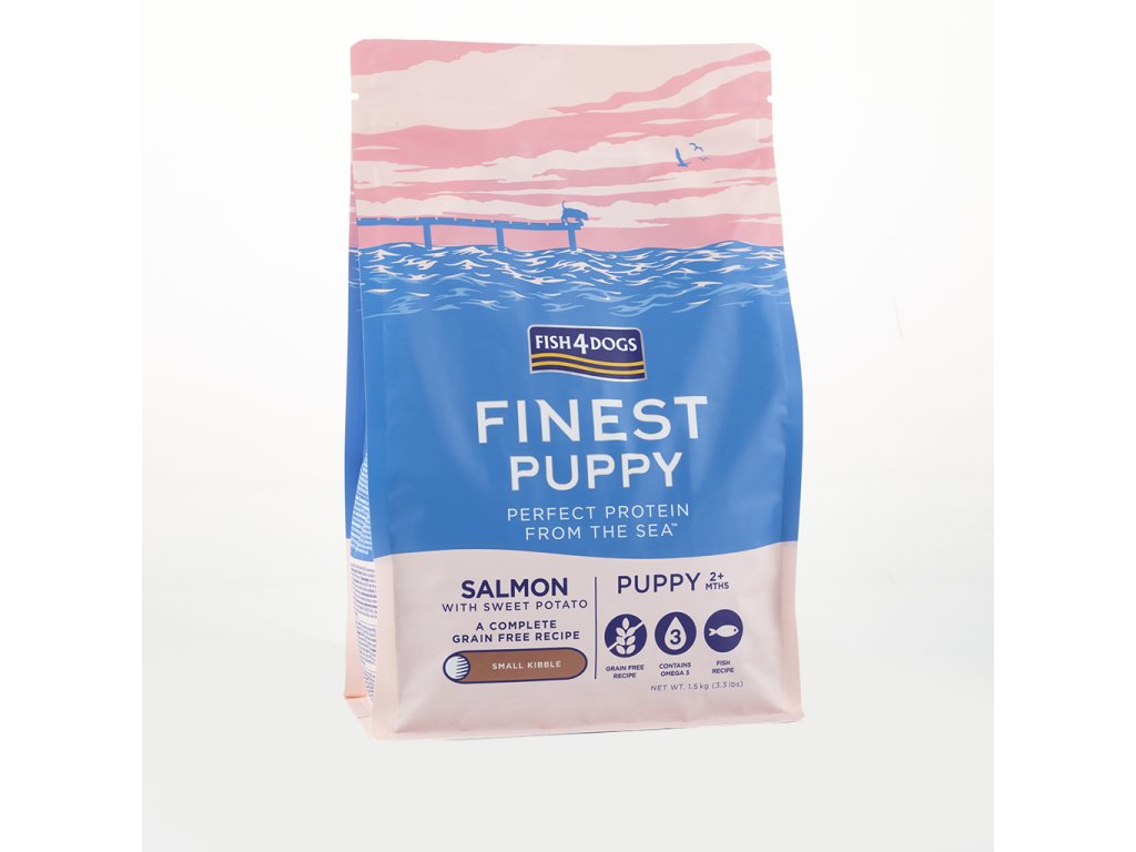 FISH4DOGS Granule malé pro štěňátka Finest losos se sladkými bramborami 12 kg, 2m+