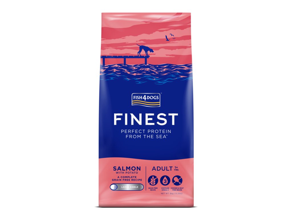 FISH4DOGS Granule velké pro dospělé psy Finest losos s bramborami 6 kg, 1+