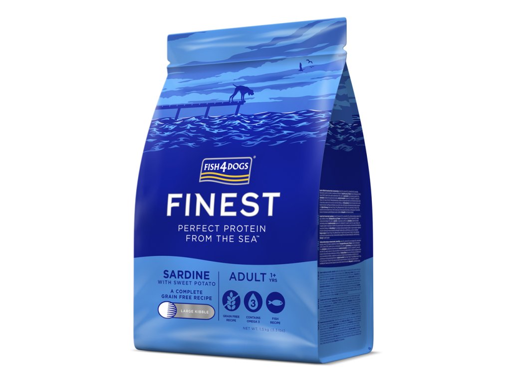 FISH4DOGS Granule velké pro dospělé psy Finest sardinka se sladkými bramborami 1,5 kg, 1+