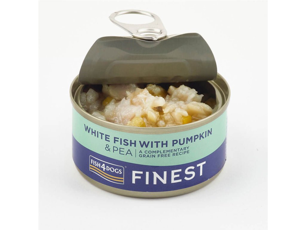 FISH4DOGS Konzerva pro psy Finest bílá ryba s dýní a hráškem 85 g