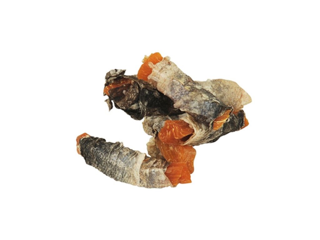 Rybí závitky s batátem jsou skvělé pamlsky pro vaše psí kamarády. Jsou lahodnou kombinací zeleniny a ryb. Vyrobeno z chutných sladkých brambor zabalených v křupavé rybí kůži. Pamlsky jsou lahodné a křupavé a vytvářejí skvělou kombinaci chutí.