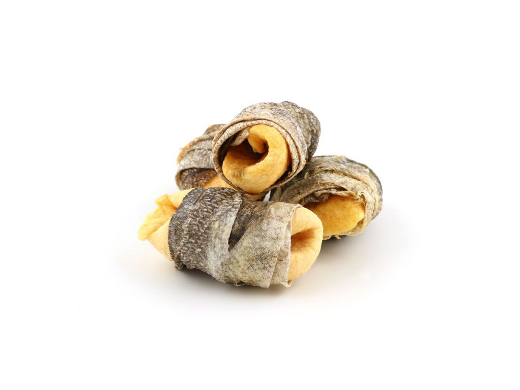 Rybí závitky s jablkem jsou skvělé pamlsky pro vaše psí kamarády. Jsou lahodnou kombinací ovoce a ryb. Jsou vyrobeny ze sladkého jablka zabaleného v křupavé rybí kůži. Pamlsky jsou lahodné a křupavé a vytvářejí skvělou kombinaci chutí.