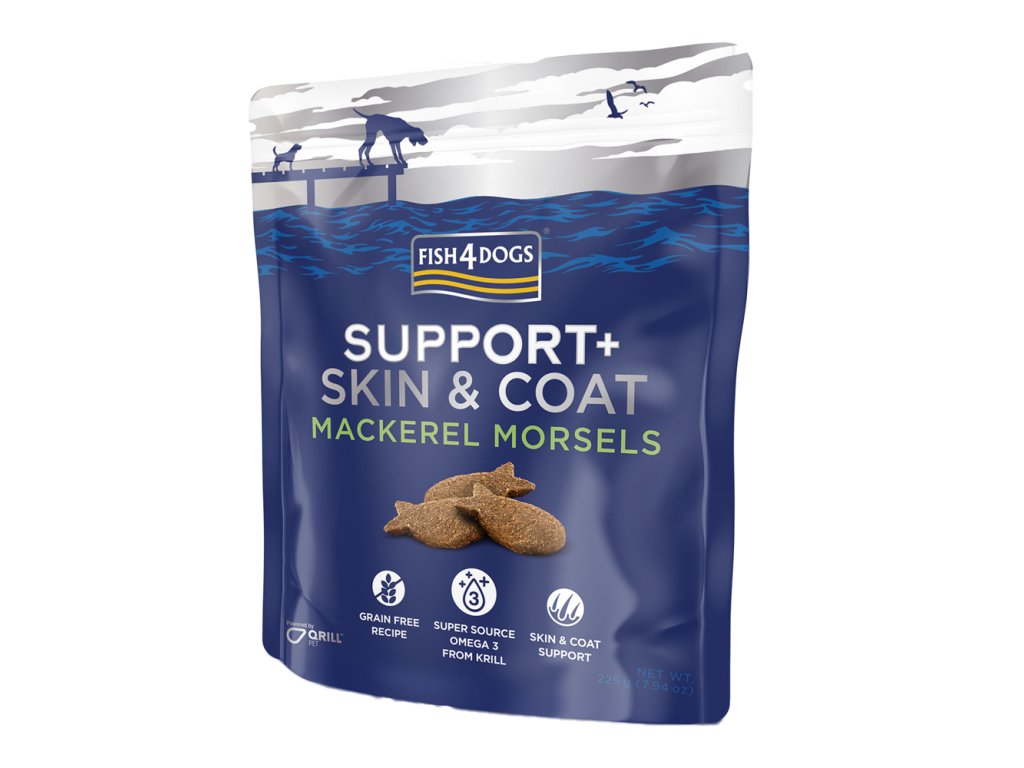 FISH4DOGS Pamlsky pro psy SUPPORT+ srst a kůže makrela 225 g