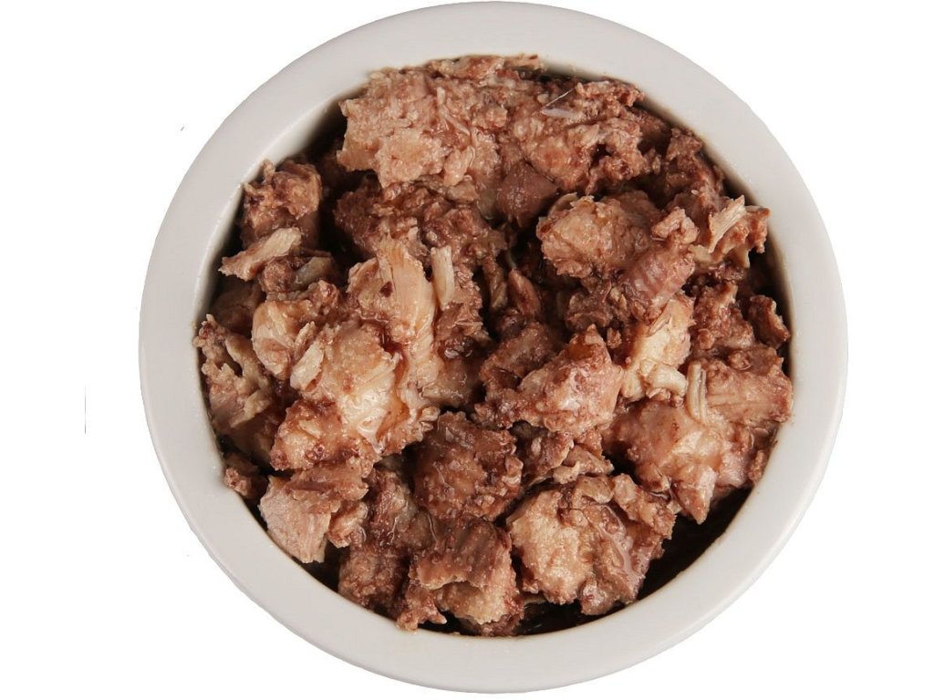 Složení: Kuře, kuřecí játra. Konzerva může obsahovat kosti.