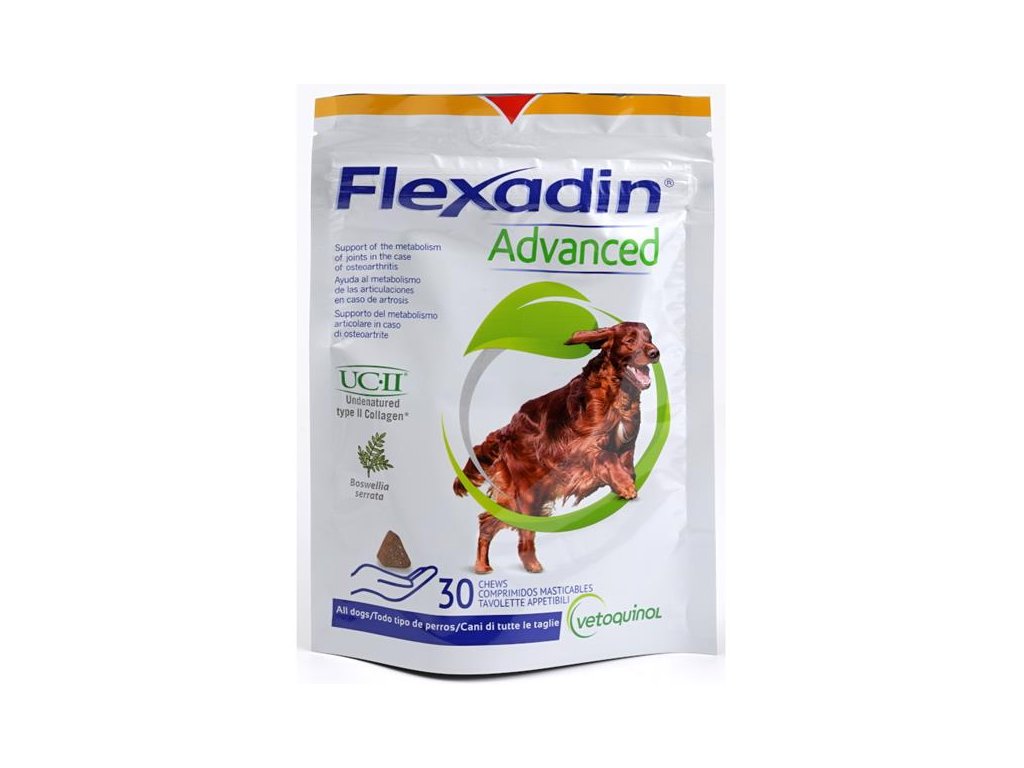Flexadin® Advanced je veterinární přípravek / doplněk krmiva podporující metabolismus kloubů. Původní receptura byla obohacena o výtažek léčivé rostliny Boswellia serrata, která je známá pro svůj protizánětlivý účinek.Osteoartritida (artróza) je progresivní, degenerativní, multifaktoriální onemocnění kloubů především u starších psů, dochází při ní k pohybovým problémům, bolestivosti a dyskomfortu.