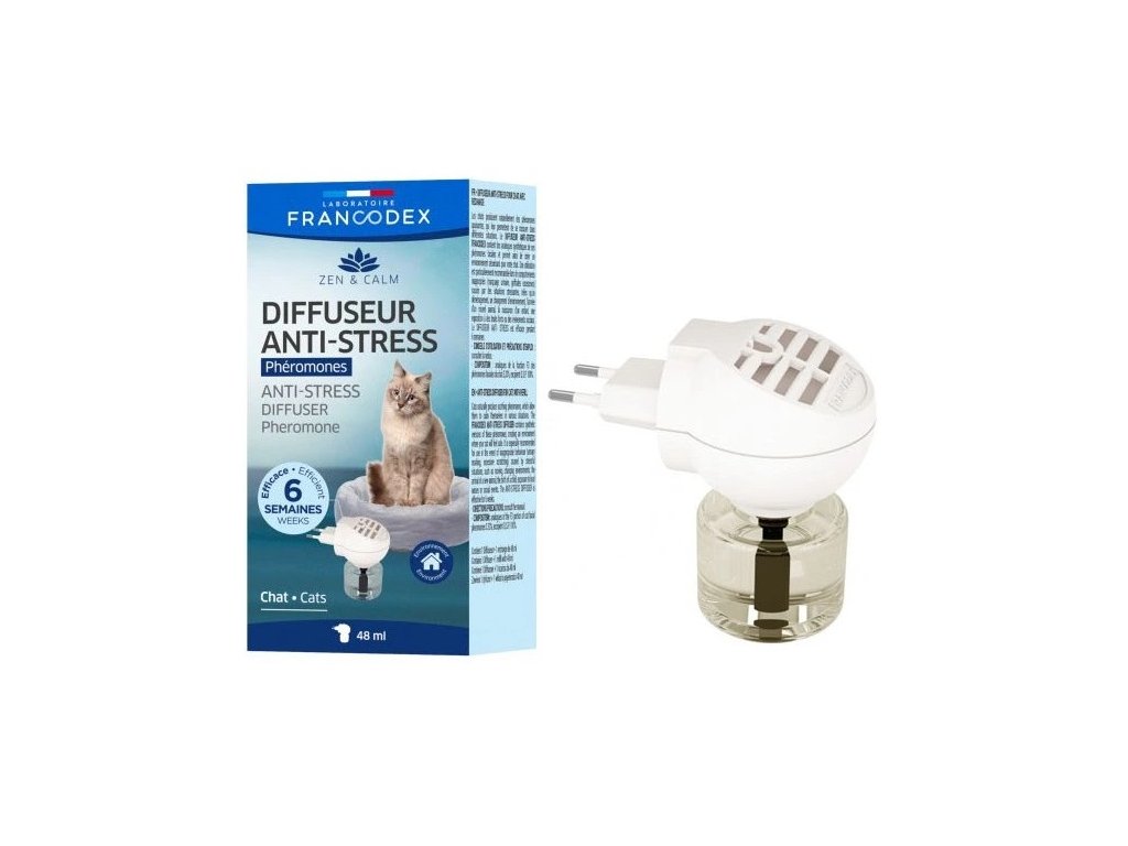 Pokud se kočka cítí bezpečně ve svém prostředí, otírá hlavu o nábytek, rohy zdí, nebo okraje záclon a zanechává zde látky nazývané "obličejové feromony". Tyto feromony jí poskytují pocit spokojenosti a pohodlí bez jakéhokoliv stresu. Pokud nastanou změny v prostředí, ve kterém kočka žije (např. návštěva veterináře, návrat z nemocnice, přestěhování se, změna nábytku, cizí lidé) anebo pokud je kočka vystrašená, může se vyvinout stav neklidu a strachu. Tento stav je provázen změnami chování, jako jsou: značkování močí, škrábání, ztráta apetitu, odmítání her a aktivit. Francodex difuzér imituje kočičí obličejový feromon, který navozuje stav bezpečí a pohody.