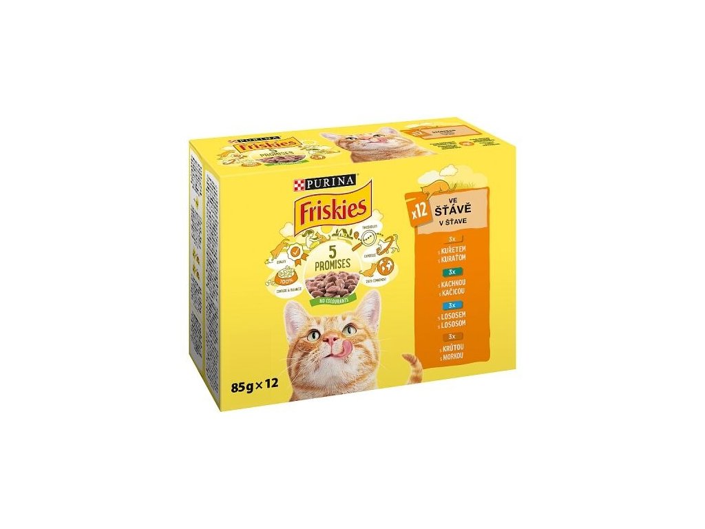 Friskies kuře kachna losos krůta ve šťávě 12 x 85 g
