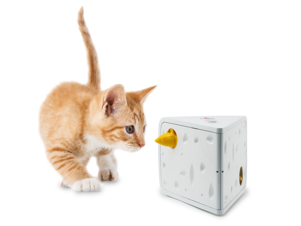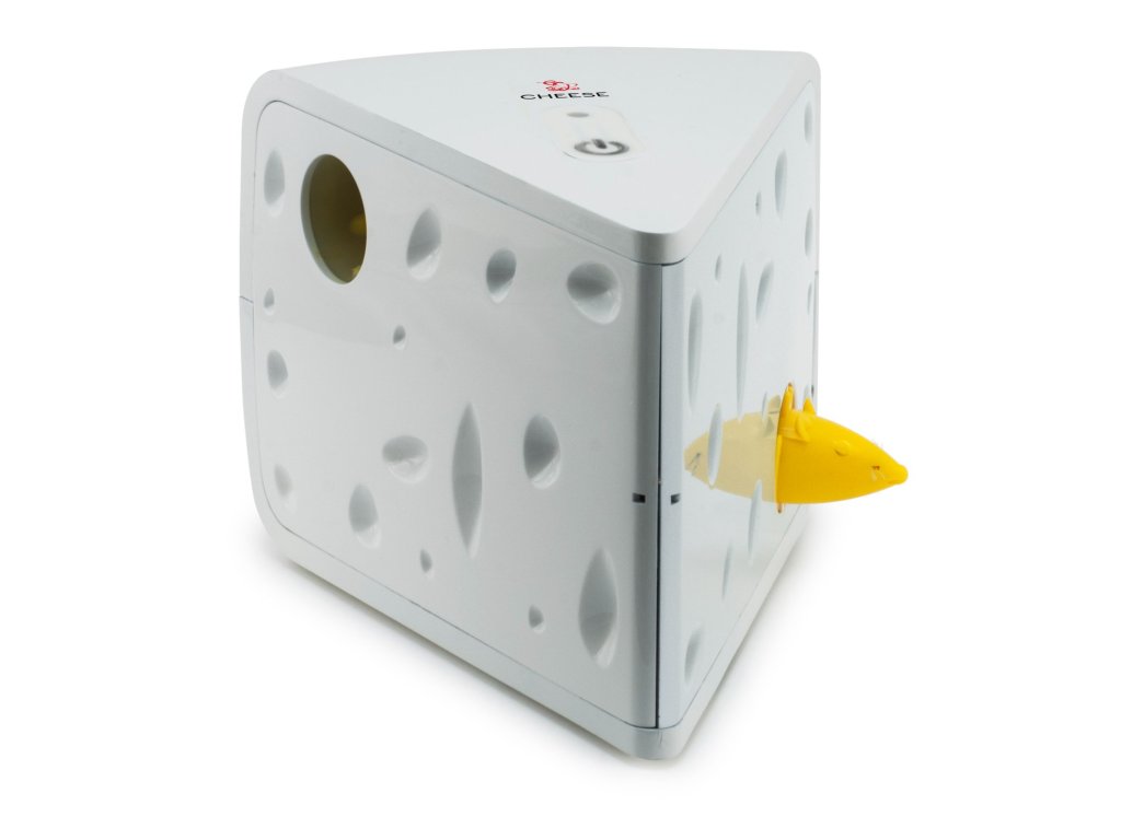 Tuto vzrušující hru na lov budou vaše kočky milovat. 2 myšky se schovávají a vykukují z bloku švýcarského sýru. Pro chvíle plné zábavy i ve vaší nepřítomnosti použijte funkci "Play While You Are Away“ (tento režim umožňuje náhodné spuštění hračky během dne). V režimu "One-Time-Play Mode" se hračka automaticky vypne po 10-15 minutách.