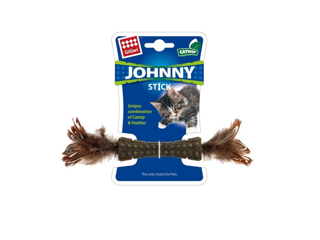 GIGWI Hračka pro kočky Johnny Stick s oboustrannými peříčky a catnipem 8x2,5x2,5cm