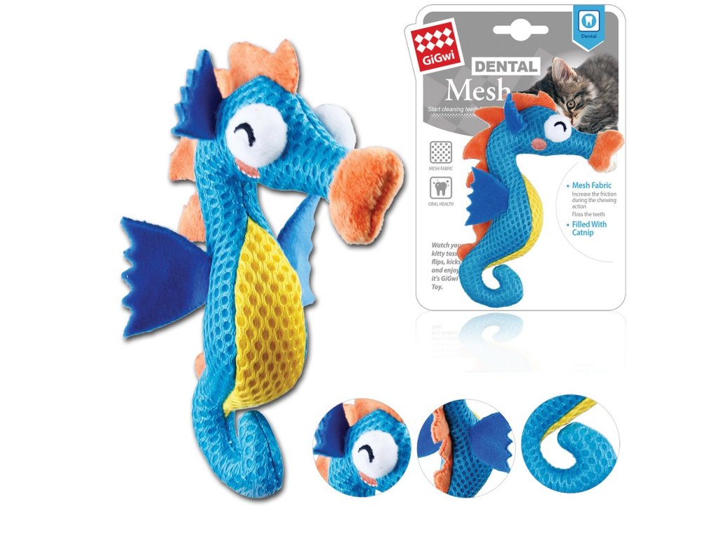 GiGwi kočičí hračka Dental Mesh mořský koník 15 x 10 x 3 cm