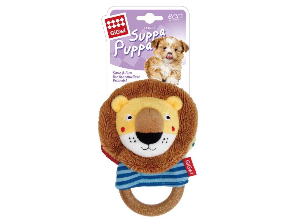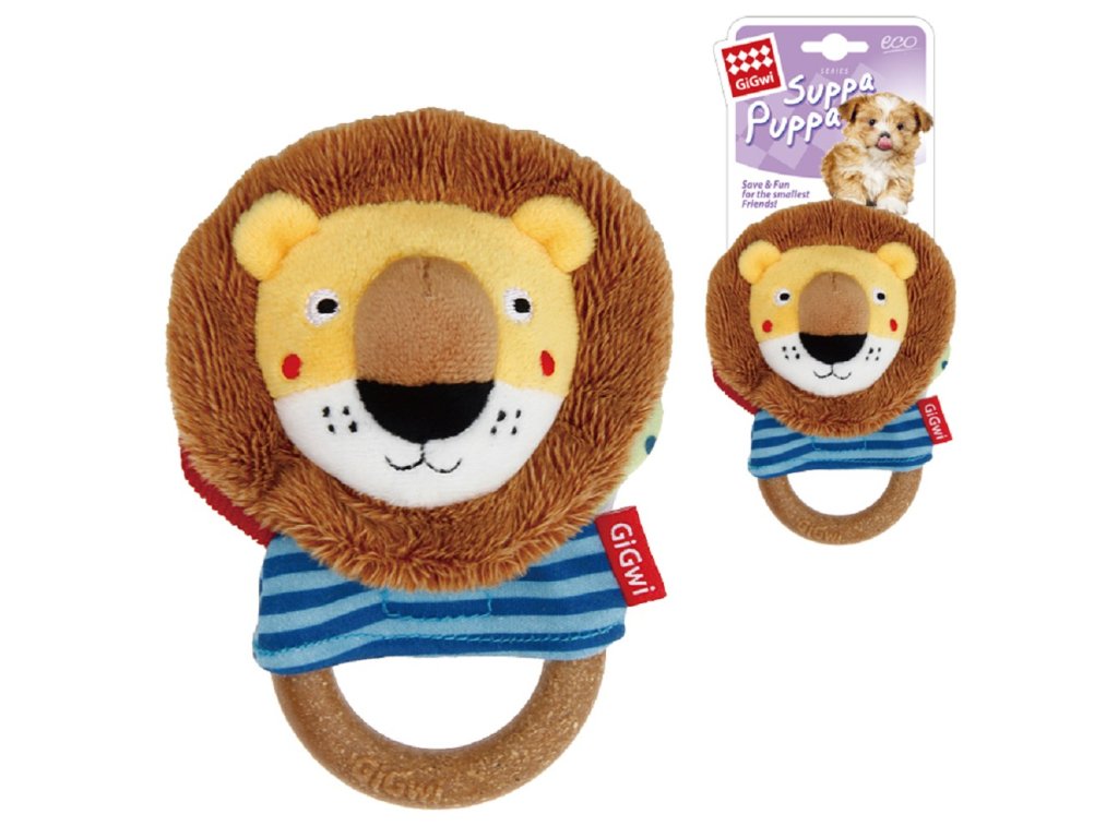 Gigwi plyš Suppa Puppa plyšový lev s kroužkem 7,6 x 14 x 3,2 cm