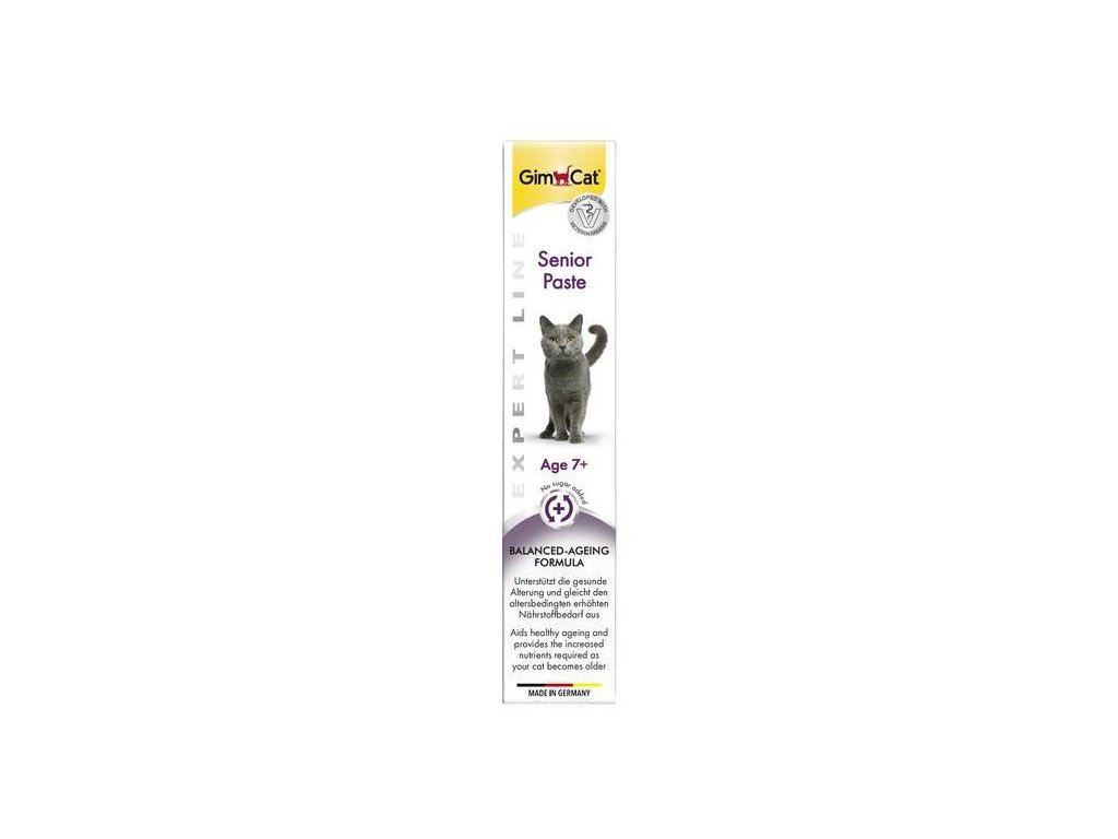 Gimcat Senior pasta je určená speciálně pro výživu starších koček. Kombinuje kvalitní suroviny do jedinečné receptury, která podporuje pohyblivost a radost ze života u kočičích seniorů od 7 let věku a pokrývá zvýšené nutriční požadavky související s věkem. Pasta obsahuje Balanced-Aging formuli, vysoce kvalitní komplex účinných látek, který pomáhá zabránit speciálnímu spektru změn spojených s věkem a snížit související obtíže. Navíc obsahuje pasta hydrolyzovaný protein z bílých ryb, který podporuje vyvážené trávení. L-karnitin a B-komplex podporují látkovou výměnu. Betaglukany napomáhají přirozené imunitě Vaší kočky.