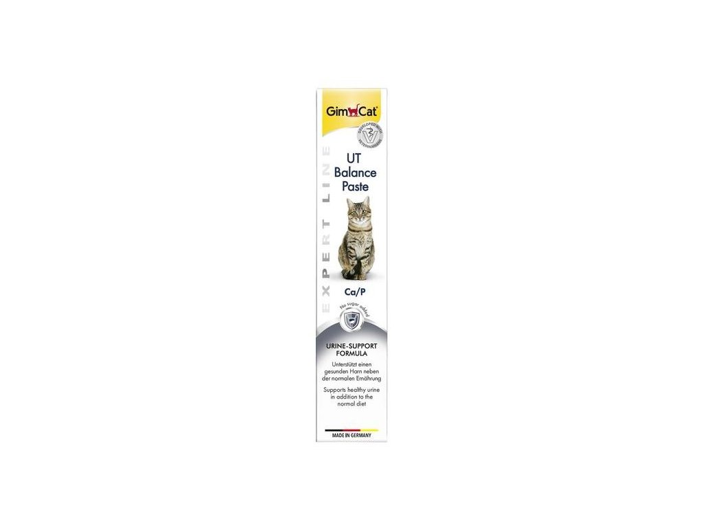 Kočky mají silně koncentrovanou moč, hospodaří tak s vodou. To ale může vést k tvorbě močových kamenů. Účinek pasty je zaměřen proti močovým kamenům. UT Balance paste od Gimcat působí podpůrně na zdravé močení.