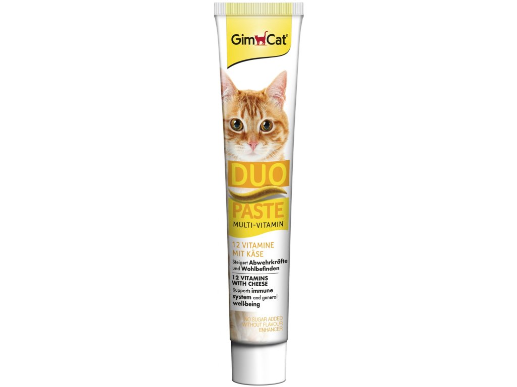 Pasta Gimcat Duo je kombinací přírodních olejů, vlákniny a sýra. Díky tomu tento pamlsek podporuje imunitní systém, ale zároveň je pro kočku velmi chutný a tak nemá problém s jeho konzumací. Kombinace látek, které jsou v pastě obsaženy, zároveň pomáhá trávicímu traktu kočky s vyměšováním nahromaděných chlupů.