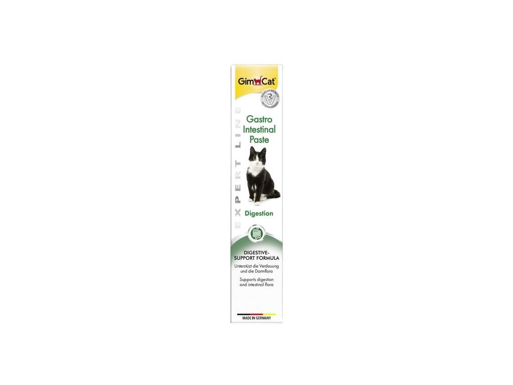 Gimcat Gastro Intestinal Pasta je speciální doplněk stravy určený pro kočky všech plemen a velikostí. Pomáhá zlepšovat trávení kočky a udržuje její trávicí trakt zdravý. Přidané látky pomáhají předcházet případným zánětům, čímž fungují i jako prevence.