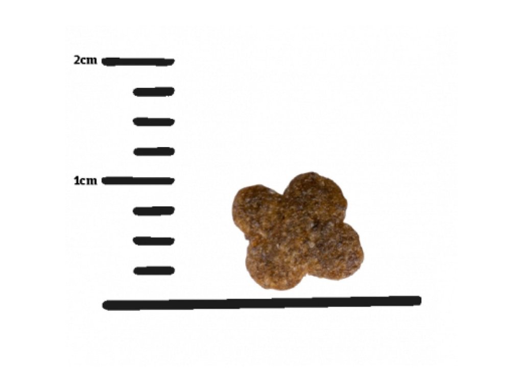 Analytické složky: protein 30,0%, obsah tuku 15,0%, hrubá vláknina 2,1%, hrubý popel 7,6%, vápník 1,50%, fosfor 1,15%, hořčík 0,11%.