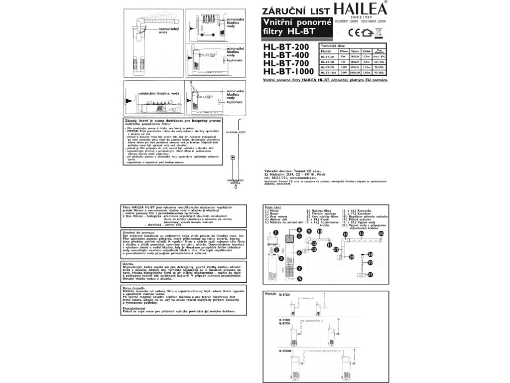 Filtry Hailea HL-BT jsou vybaveny rozstřikovacím nástavcem regulujícím průtok filtrem a rozrušováním hladiny vody v akváriu ji okysličují.