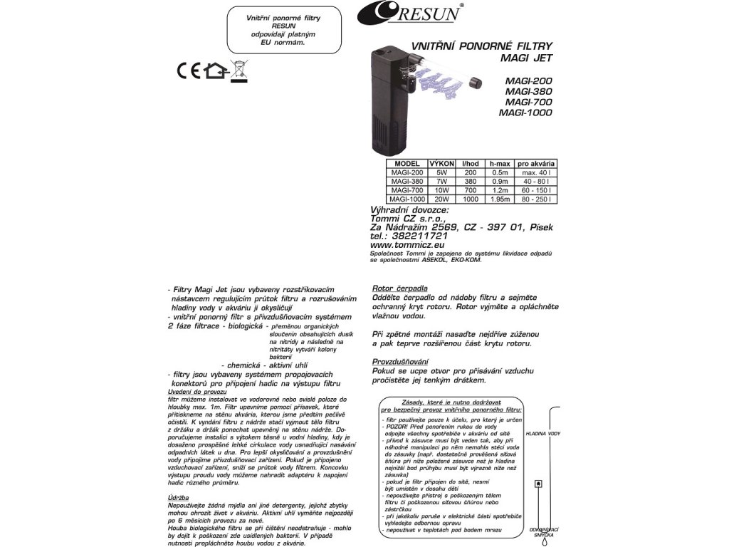 Vnitřní ponorný filtr Magi Jet je vybaven rozstřikovacím nástavcem regulujícím průtok filtru a rozrušováním hladiny vody v akváriu ji okysličují.