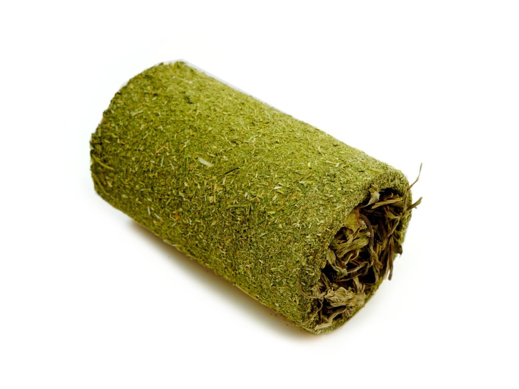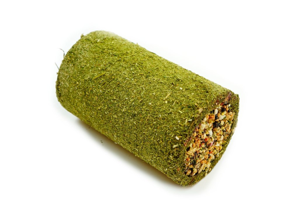 Atraktivní a přírodní pamlsek, který doplňuje každodenní stravu hlodavců. Tunel z celulózy obalený bylinkami a naplněný z jednoho konce pestrou směsí semen a z druhého konce listy jitrocelu.
