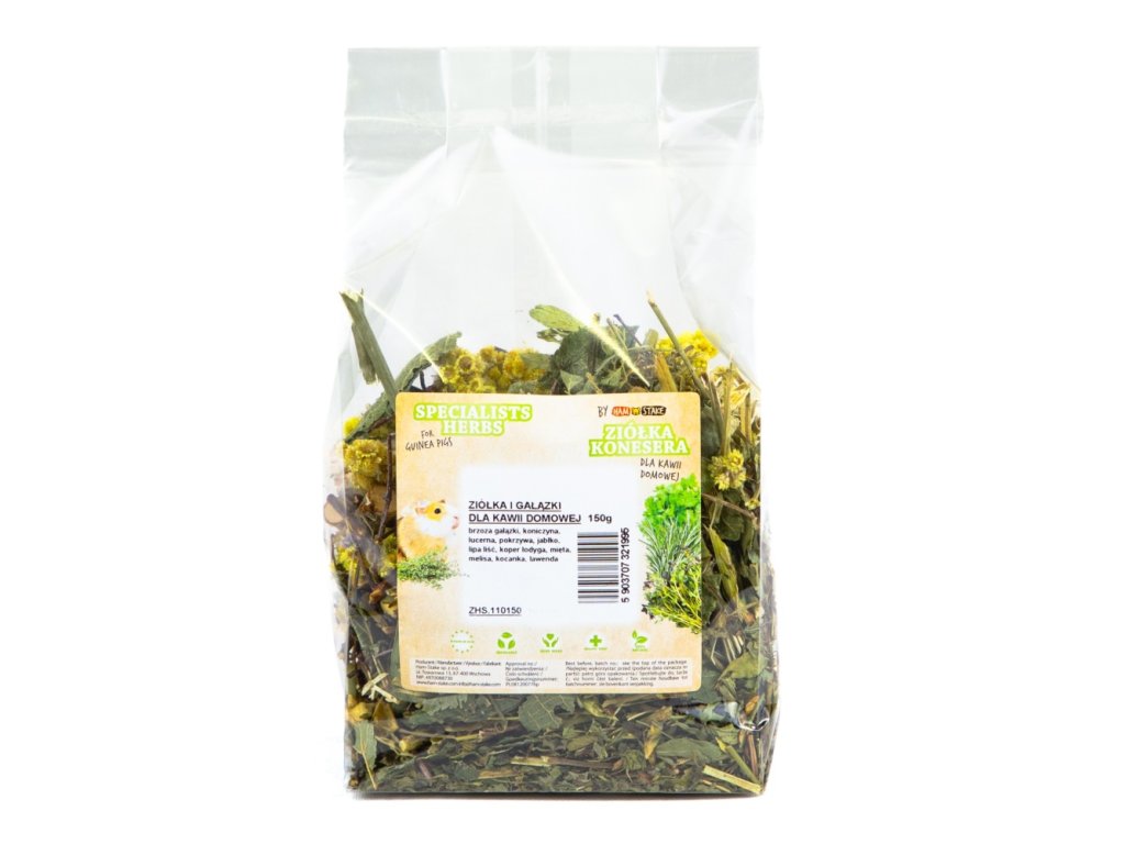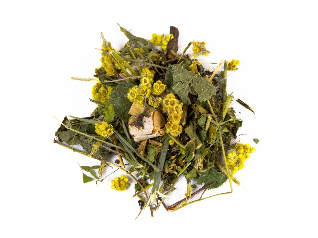 Složení: březové větvičky, jetel, vojtěška, kopřiva, jablko, lipový list, nať kopru, máta, meduňka, helichrysum, levandule.