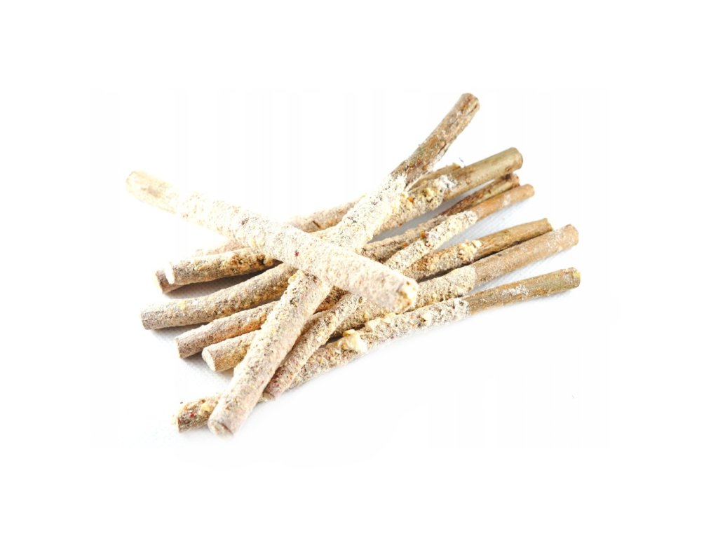 Použité jsou pouze nejmladší lískové výhonky, ty nejbohatší na nutriční hodnoty. Konzervované jsou díky speciálnímu procesu sušení a spojování se zeleninou. Tato kombinace vytvoří nejen velmi zdravou svačinu, ale také potěší vašeho mazlíčka plnou chutí zralé mrkve.