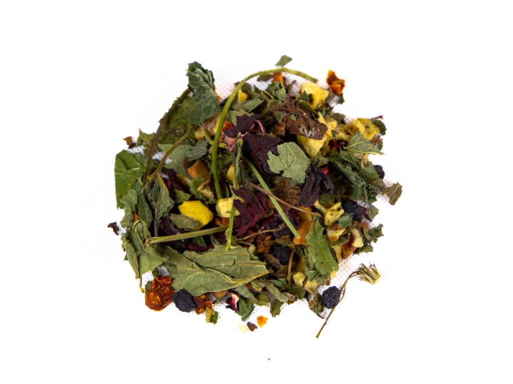 Složení: měsíček, list jahodníku, ibišek, jablko, slaměnka, sléz, rajče, aronie, banán, šípek.
