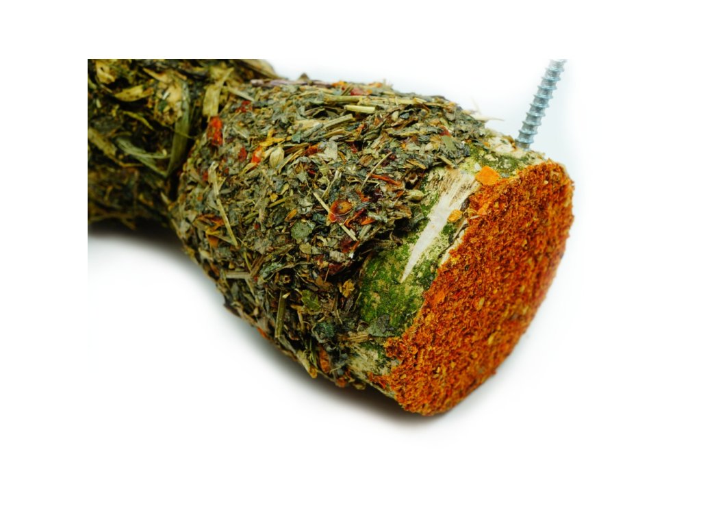 Toto přírodní krmítko je vhodné zejména pro králíky, morčata, činčily, osmáky, ale také křečky, potkany, myši a další hlodavce. Krmítko je kombinací pamlsku a materiálu k broušení hlodavých zubů. Vyjídáním směsi zeleniny a bylin se zvíře zabaví a pochutná si. Samotné krmítko může posloužit jako vítaný materiál k okusu.