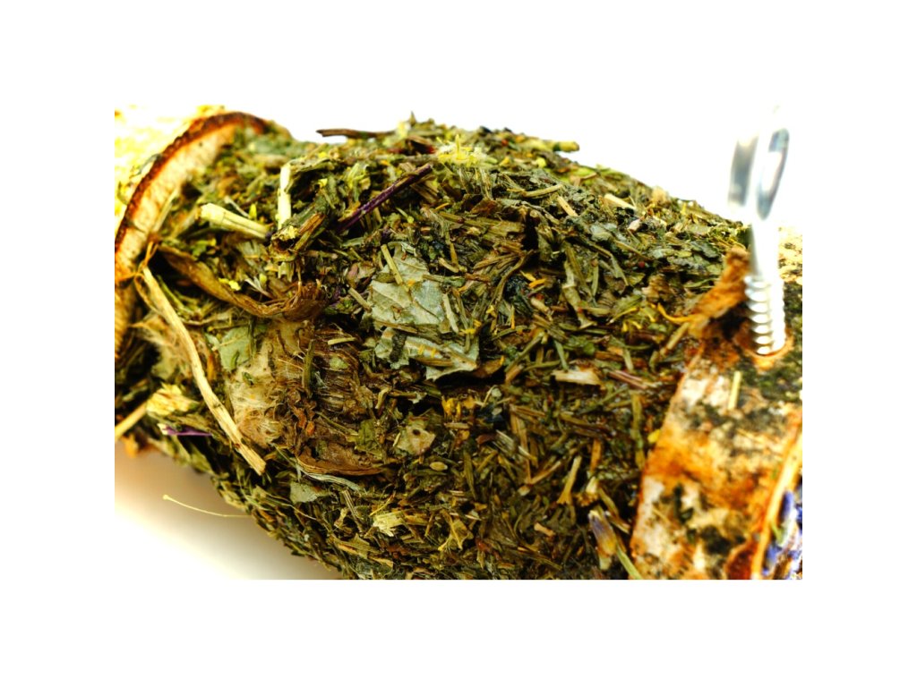 Směs chutné zeleniny a bylinek ve větvi z břízy podnítí vaše zvíře k aktivitě.