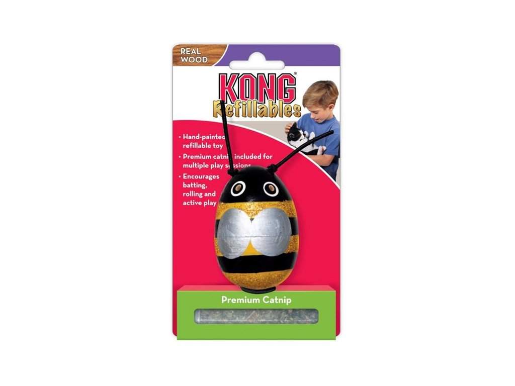 Plnitelná dřevěná hračka KONG Vajíčko s catnipem je ideální hračkou pro všechny hravé kočky. Catnip nebo šanta kočičí je přírodní nenávykovou bylinou, která povzbuzuje do hry až 70 % koček. Hračka se dá otevřít pro vložení sušeného catnipu.