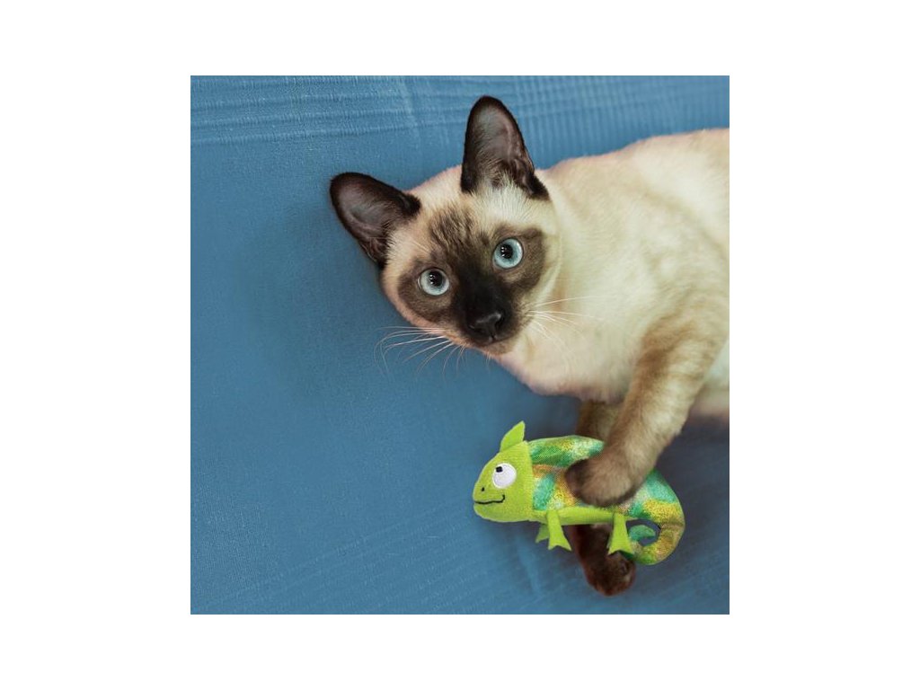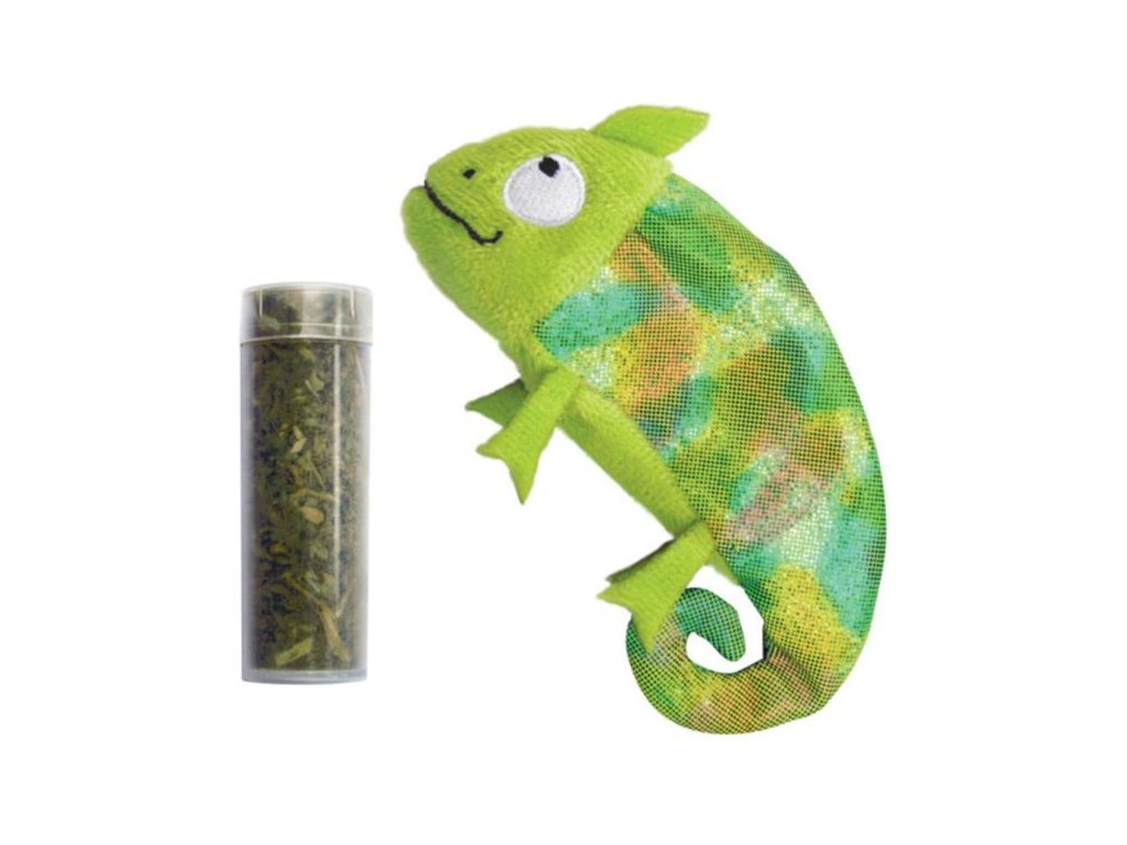 Roztomilý lesklý chameleon KONG Refillables s dlouhým zakrouceným ocáskem probudí ve vaší kočce přirozené lovecké instinkty, zažene nudu a přispěje k udržení dobré fyzické i psychické kondice. Pro větší vzrušení i radost ze hry lze zvířátko opakovaně plnit magickou šantou kočičí (catnipem), přírodní nenávykovou bylinou, která povzbuzuje ke hře až 70 % koček. Pomocí znovuuzavíratelného sáčku regulujete aroma.