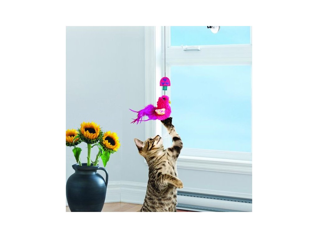 Interaktivní hračka KONG Vábnička na okno je ideální pro kočku, která si ráda hraje sama. Ptáček se šantou kočičí povzbuzuje kočku ke hře. Má speciální, pevné přichycení na sklo. Catnip, neboli šanta kočičí, je přírodní nenávykovou bylinou, která vybídne ke hře až 70 % koček. Catnip kočky přitahuje a podporuje tak jejich přirozené lovecké instinkty – pronásledovat a lovit.