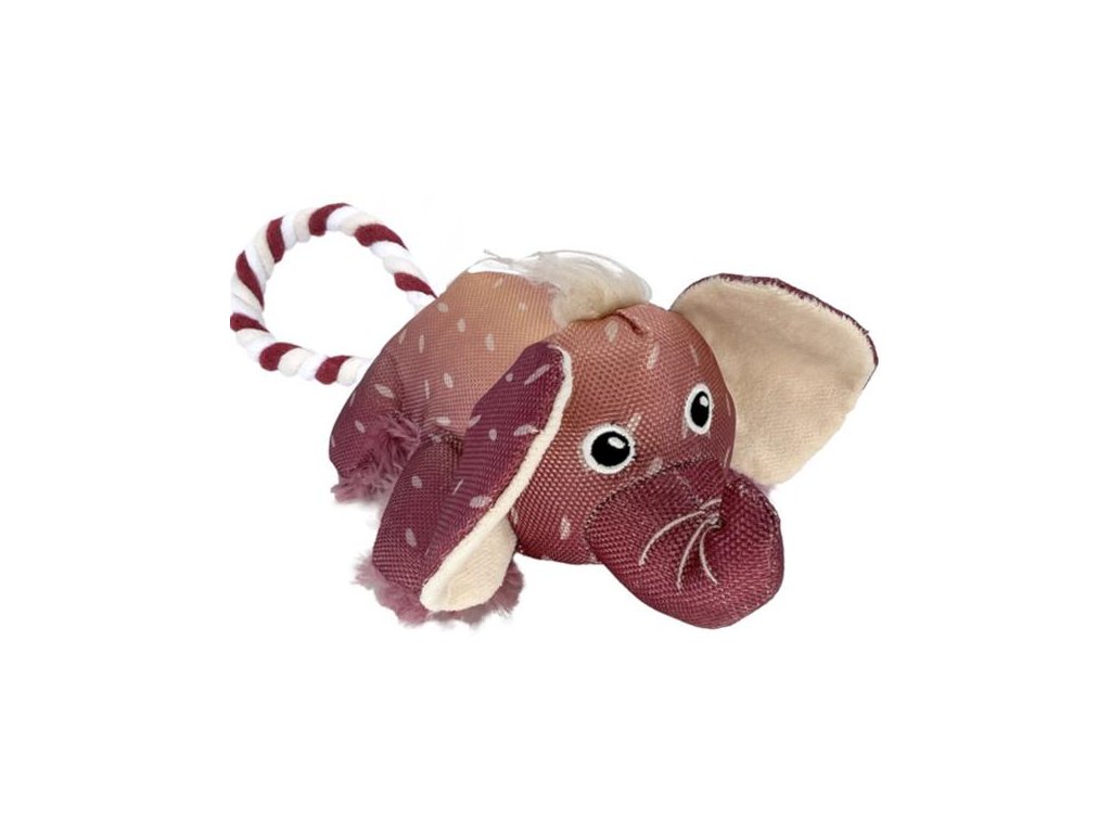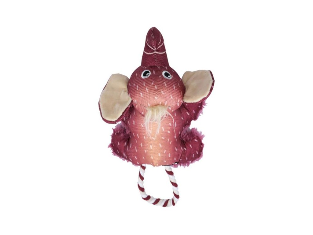 Hračka pro psy KONG Cozie Tuggz Elephant je roztomilý barevný slon s provazovou rukojetí – smyčkou ze silného bavlněného lana, jehož konce vytvářejí uzel vnořený do sloního těla. Po skousnutí vydává hračka pískavé zvuky. Břicho a vnitřní stranu končetin pokrývá hebký a měkký plyš, zatímco ostatní části jsou vyrobeny z látky. Hračka dokonale uspokojují přirozené psí instinkty a zabaví na dlouhé hodiny.